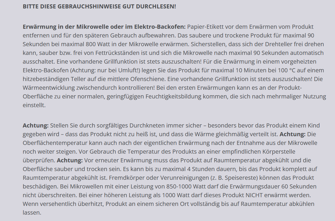 WARMIES Gebrauchsanleitung&Pflegehinweise